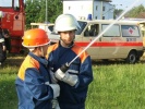 Spektakulär war auch der simulierte Schwelbrand im evangelischen Kirchturm. Die mutigen Feuerwehrleute scheuten kein Risiko, um die im Kirchturm vermisste Person zu retten. Zum Glück konnte sie mit dem Bergetuch in allerletzter Minute gerettet werden. Erschöpft von diesen und anderen Einsätzen trafen sich die jungen BF-ler und BRK-ler dann zum Mittagessen.