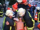 Ein realistisch nachgestellter Verkehrsunfall mit einem PKW, einem Bagger sowie einem Fahrrad wurde ebenso in hervorragender Manier bewältigt. Selbstverständlich stand auch ein Fehlalarm auf dem Plan, wie es eben bei einer Berufsfeuerwehr immer wieder vorkommt. Abschließend musste ein Kellerbrand in Roßtal in der Flurstraße gelöscht werden, zwei verletzte Personen (Dummys) wurden gerettet.
