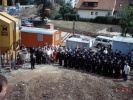 Das neue Feuerwehrhaus entsteht. Zu sehen sind Bauplatz, Grundsteinlegung, Rohbau, Richtfest und Einweihung.
