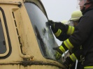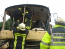 Die Türen des Omnibus waren - anders als bei PKW üblich - am leichtesten mit einem Trennschleifer an den Scharnieren zu öffnen um so einen therapeutischen Zugang zu erhalten. Grundsätzlich ist der Umgang mit pneumatischen Komponenten schwieriger - und wenn sich nur beim Abstellen des Motors der Fahrersitz in eine Standard-Position senkt und der eingeklemmte Fahrer so in seiner Position bewegt werden könnte.