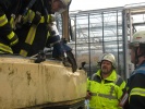 Analog zu PKW-Unfällen musste der Bus zunächst gegen Wegrollen gesichert und unterbaut werden, so dass sich während der Arbeiten die Position des Fahrzeuges (vorallem gegenüber dem eingeklemmten Fahrer, einem Dummy) nicht veränderte.
