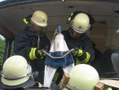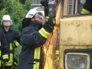 Schlussendlich konnte der eingeklemmte Dummy mit Hilfe der Schaufeltrage patienten- und achsengerecht aus dem Bus gerettet werden.