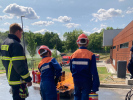 Ein Dekon-Platz sowie ein Faltbehälter wurden aufgebaut. Von dort aus wurde in luftiger höhe eine Brandbekämpfung von der Drehleiter durchgeführt.