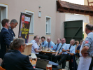 Der Kamerad Hans-Günther Fischhaber wurde nach 43 Dienstjahren in den passiven Stand verabschiedet. Olszewsky bedankte sich in Namen der Feuerwehr Roßtal für die vielen erbrachten Jahre im Dienste der Feuerwehr und überreichte ein Geschenk.