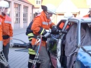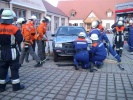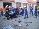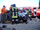 und Roßtal veranstalteten auf dem Hof des Feuerwehrhauses eine Übung, bei dem verletzte Personen aus einem verunfallten PKW gerettet werden mussten.