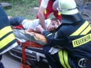 Gegen 19:30 Uhr: Ein mit 20 Personen besetzter Reisebus kommt von der B14 in Höhe Gutzberg ab, stürzt von einer Brücke und prallt mit einem Traktor zusammen. Beide Fahrzeuge bleiben auf der Seite liegen. Von der Leitstelle in Nürnberg wird die Feuerwehr Stein alarmiert. Als diese am Unfallort eintrifft, werden die Freiwilligen Feuerwehren aus Oberasbach, Zirndorf, Roßtal, Gutzberg, Weihersbuch und Sichersdorf sowie die Schnelleinsatzgruppen (SEG) aus Stein, Zirndorf und Oberasbach und der Notfallseelsorger nachalarmiert. Jeder Feuerwehr wird eine Aufgabe zugeteilt. Die FF Roßtal übernimmt den hinteren Teil des Busses, wo noch mehrere Personen eingeklemmt sind. Mit Spreizer und Schere mussten dort alle Sitze entfernt werden um die verletzten Personen zu befreien.