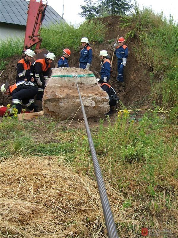 Erster Einsatz: Verschüttete Person. Seilwinde und Luftheber werden benötigt