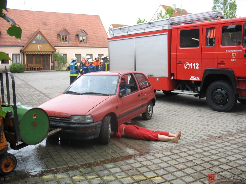 Einsatzübung: Person unter PKW mit auslaufenden Flüssigkeiten