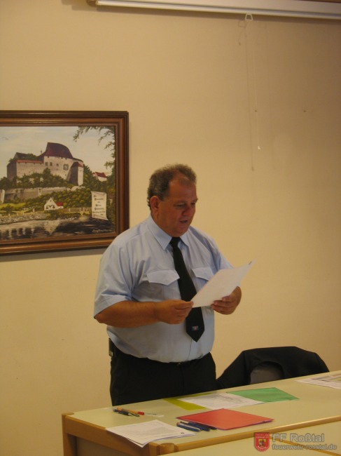 Kreisbrandrat Dieter M. während der Begrüßung, darauf folgte die theoretische Prüfung.