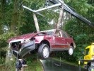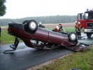 Um 14:18 Uhr wurde die Feuerwehr Roßtal zu einem Verkehrsunfall auf der Verbindungsstraße von Roßtal nach Clarsbach gerufen. Beim Eintreffen der Einsatzkräfte hatte sich die Fahrerin bereits aus dem Autowrack befreien können, der PKW hatte jedoch Totalschaden. Die junge Fahranfängerin bliebt völlig unverletzt. Die Einsatzkräfte mussten nur noch die Unfallstelle absichern und die Fahrban reinigen. Zur Unfallursache ist noch nichts genaueres bekannt. Wahrscheinlich kam der PKW etwas nach rechts von der Straße ab und streifte dabei hochstehende Wurzeln (siehe Bild). Dadurch fiel der Wagen auf das Dach und schliff noch ca. 100 Meter auf der Straße entlang.