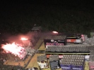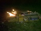 Mehrere, fast schon professionell auf etlichen Schaltafeln aufgebaute, leere Feuerwerksbatterien standen in Flammen.