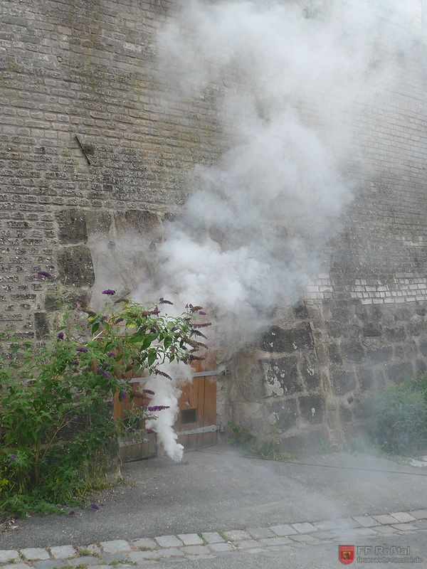 Rauchbombe und Nebelmaschine in Betrieb