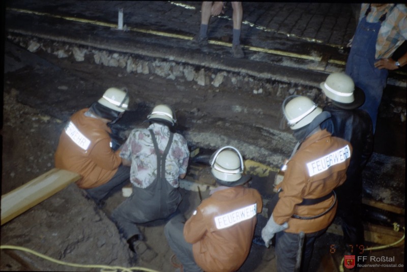 Dieses Bild ist von einem anderen Einsatz, wo es ebenfalls wegen Unterspülung der Straße zu Problemen kam.