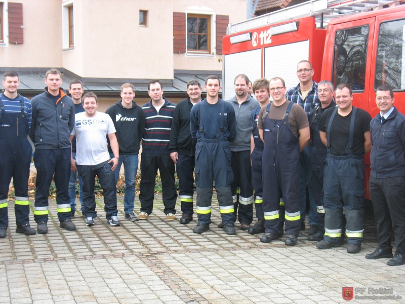 Die 14 Teilnehmer zusammen mit Lehrgangsleiter Kreisbrandmeister Armin Betz (7. v.l.) und KBM Frank Bauer (rechts)